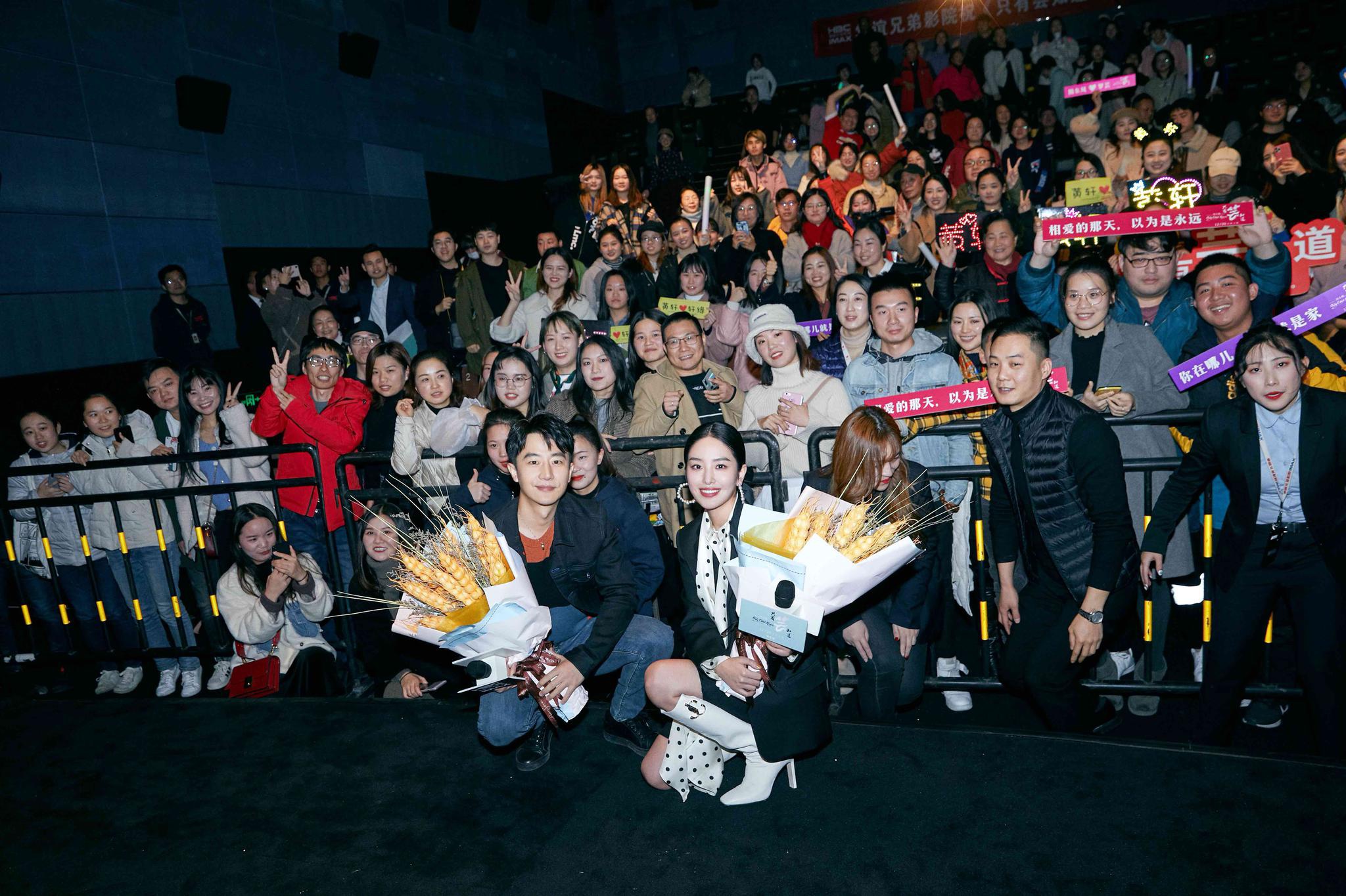 黄轩映后现身观影现场,武汉话与观众打招呼倍加亲切,还安慰现场感动的粉丝“你还这么年轻,要相信爱情,隋东风本人就站在你面前啊。”电影中,隋东风和罗芸远在异国他乡,识于微时,相恋的过程亦充满了许多浪漫桥段,其中一段重要戏份就是隋东风给罗芸涂抹护手霜。不少观众看完电影后依旧沉浸在影片氛围里,希望能如电影中的女主角有一次浪漫体验。除了现场重现电影经典画面外,黄轩还向观众献上暖心拥抱,帮助观众电话表白。
