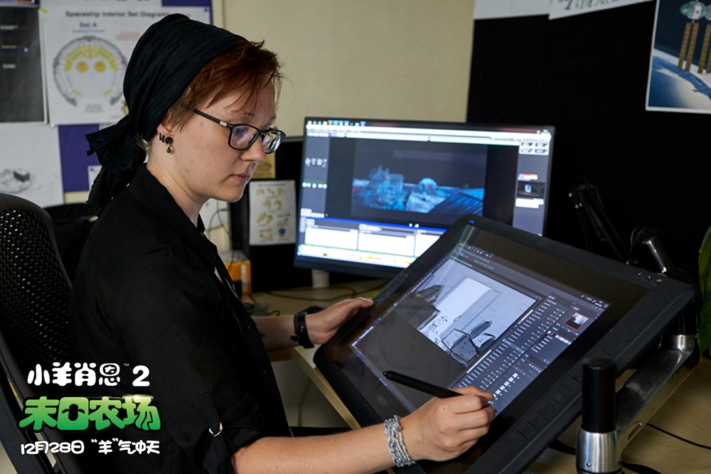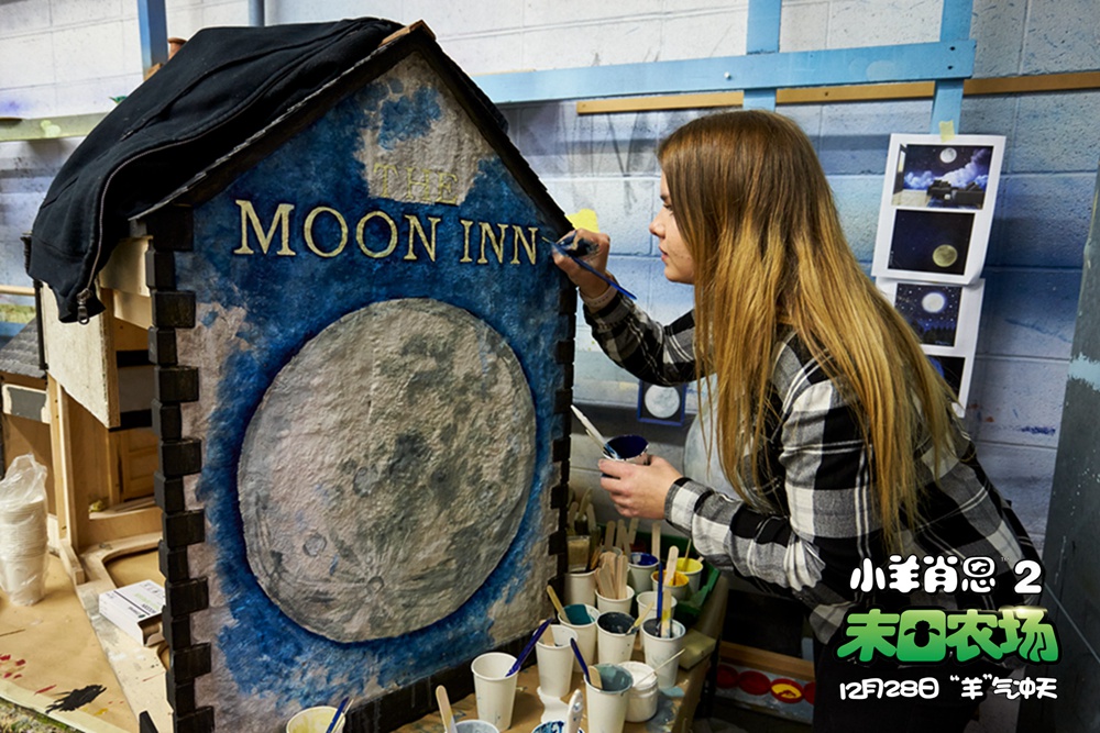 《小羊肖恩2:末日农场》讲述了小外星人噜啦(Lu-La)乘坐飞碟降临在小镇农场,引起了一系列轩然大波的故事。和以往作品中的“农场日常”不同,这次的故事格局扩展到了篱笆墙外的小镇。为了展现典型英式小镇的风貌,制作组实打实地搭建了一座虚构的微型城镇,从披萨店、便利店、洗车场到快捷民宿等建筑场所一应俱全。虽然只作为“背景板”出现短短几分钟,但是场景里的细节都是团队每天开会讨论的重点。背景色如何调配、外星人要如何拥抱,这些看似细枝末节的小事都是需要仔细分析的议题。