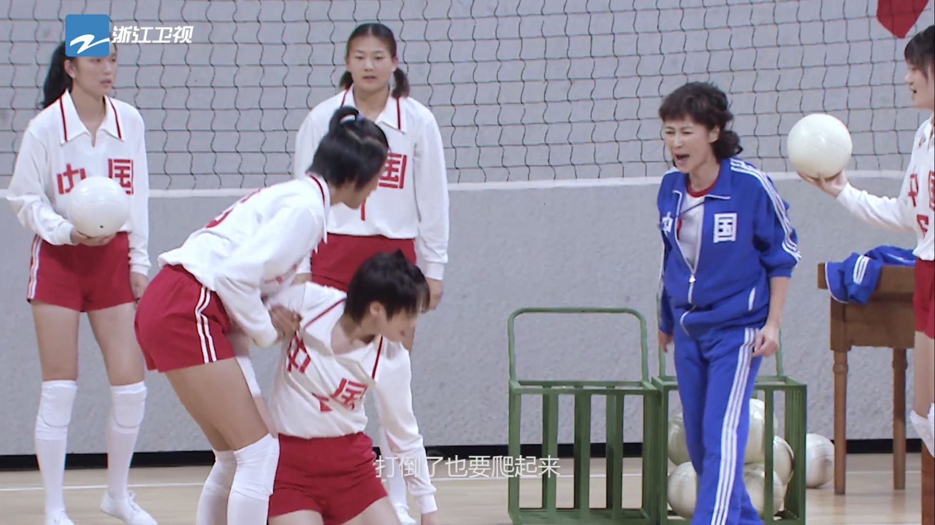 节目官微释出的最新预告片中,李宇春饰演的“沙鸥”几次接球摔倒在地, 难掩疲态,而梁静饰演的“排球教练”专业、严厉,一句“想做运动员,没有资 格放松,打倒了也要爬起来!”令人热血沸腾,接下来的短短几秒的镜头里,二人眼神犀利交锋又饱含深情,一场球场冲突似乎就要爆发,强烈的戏剧冲突使观众对明晚即将播出的节目更加期待。