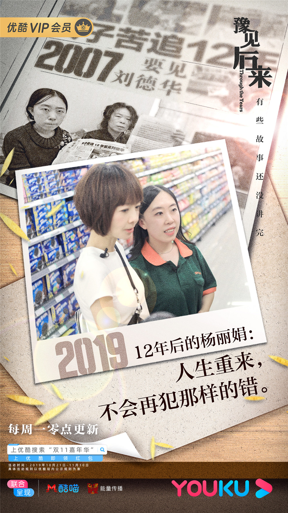 由优酷和能量公司联合出品的全新纪录式访谈节目《豫见后来》,第三期节目于11月4日零点在优酷播出,鲁豫采访了曾经疯狂追星刘德华的杨丽娟。经历了家庭巨变的杨丽娟如今的生活会是什么样?随着鲁豫的采访,一起走进杨丽娟的“后来”。