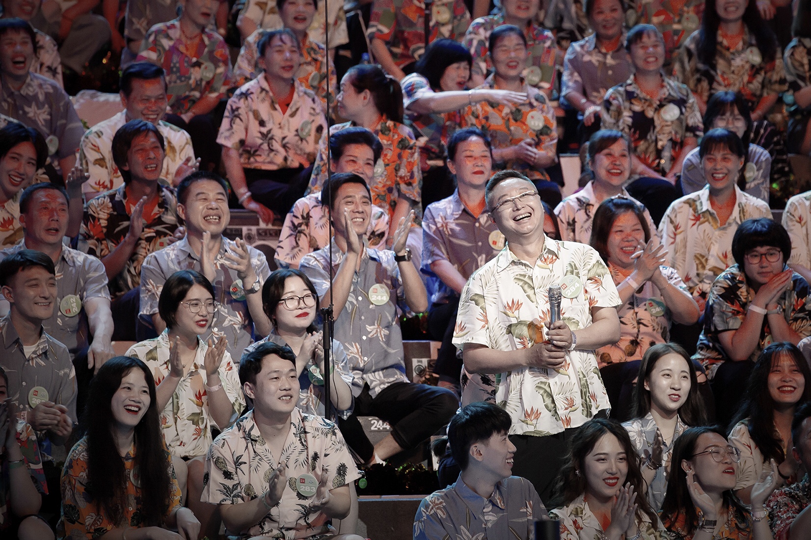 在无合彩的创意合唱秀环节中,R1SE与300合唱团共同带来了一首青春洋溢的《喊出我的名字》。296位合唱达人用指尖的灯光组成星海,用红色的应援物组成热情的海浪,表达着赤子之心乘风破浪的赤诚与热血,整齐划一的舞蹈动作堪称“300人限时出道”现场。在合唱最后,歌迷们纷纷丢出手中的纸飞机,飞向舞台,纸飞机上满载的心声令R1SE成员感动万分。而草蜢乐队则与300合唱团带来了两首金曲的串烧,当广东话版《忘情森巴舞》和国语版《失恋阵线联盟》的音乐一响起,现场便变成了一场活力四射的音乐派对。此外,草蜢合唱团也大玩复古元素,不仅用金色彩带制造氛围,更手举复古录音机卡牌,让听觉与视觉完美结合。虽然双方舞台风格不同、成员代际有所差异,但都为观众献上了载满青春活力的合唱现场。