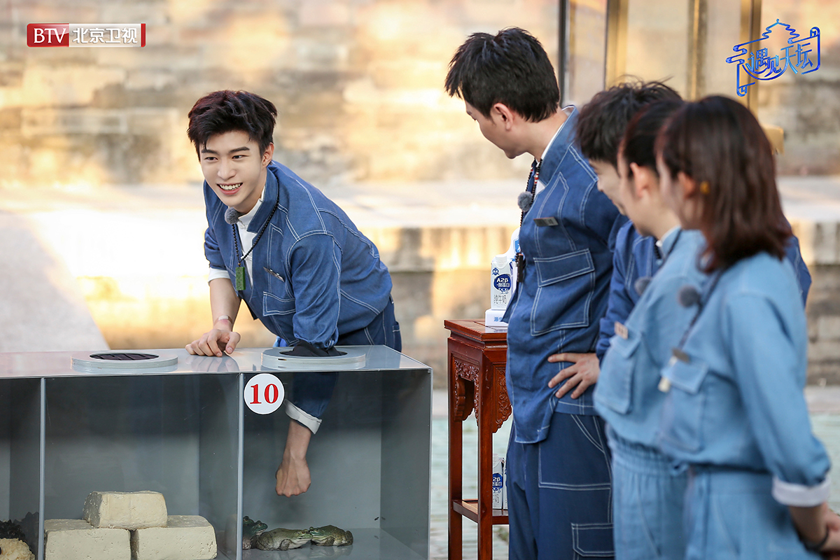 不仅有铜人的“戒尺”惩罚,实习生们还遭遇食材的猜测大考验,并判断哪些食物皇帝在斋戒时不能吃。首次来天坛实习的董子健和范丞丞,则在食材猜测大考验中被吓成了“表情包兄弟”。综艺经验丰富的董子健一开始不慌不忙得把着袖子去“恐怖箱”摸食材,并一针见血指出“队友动作越夸张,箱内食材越安全”的真理,却不料在摸牛蛙时被吓出了表情包。最后出场的范丞丞不仅尖叫连连,还觉得哪个都不能吃,贡献一大波笑点。